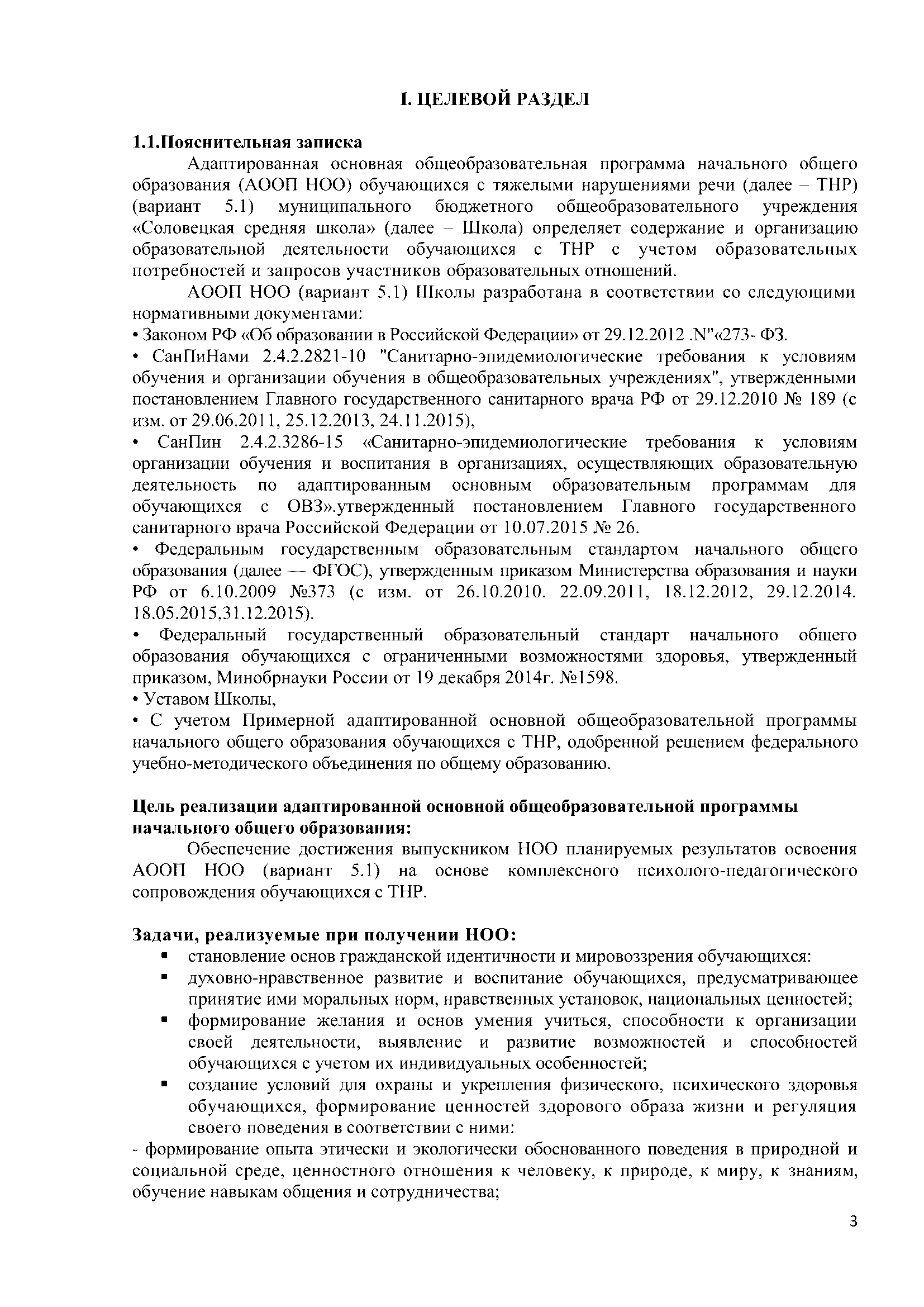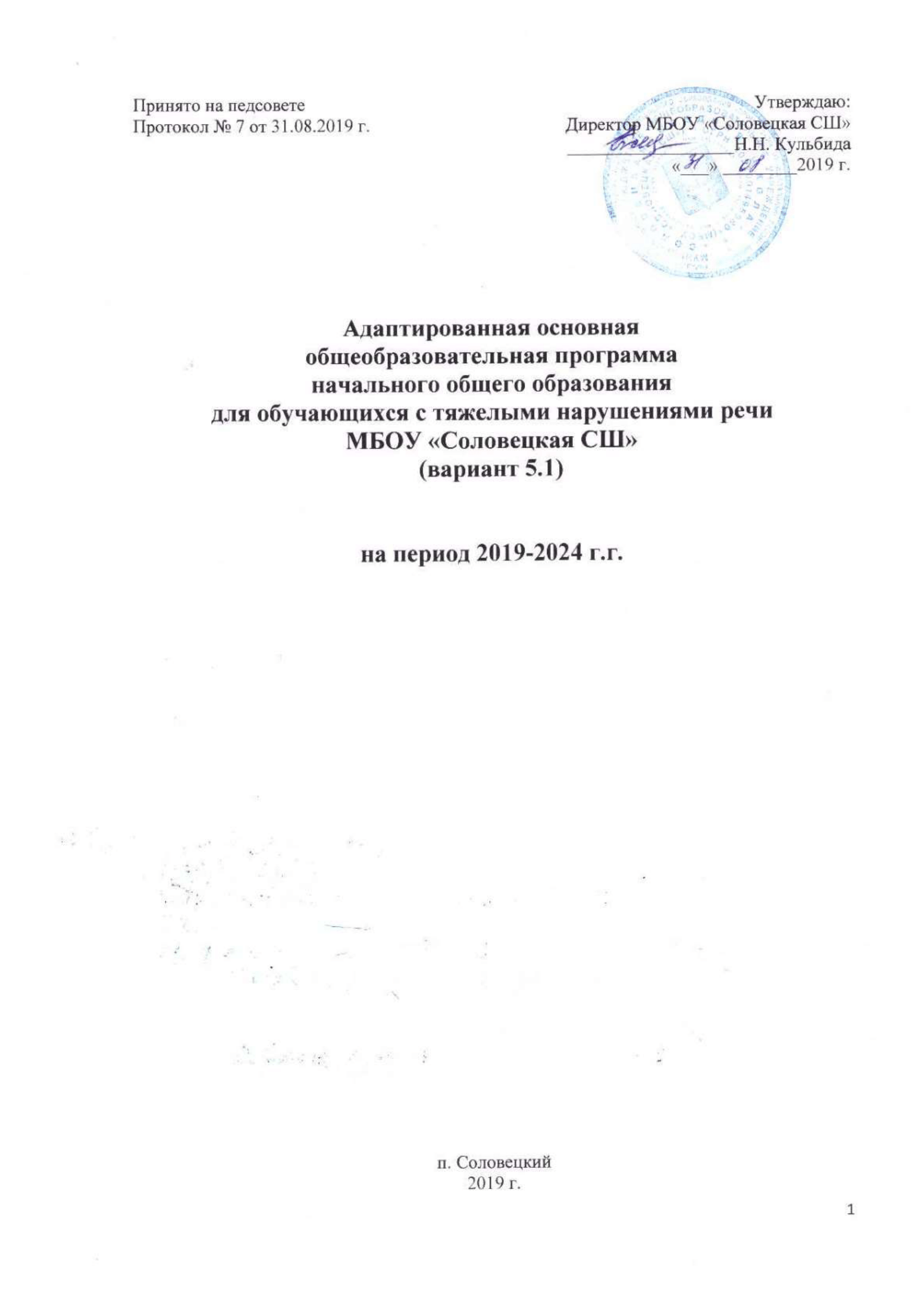 Основная образовательная программа начального общего образования МБОУ «Соловецкая СШ»