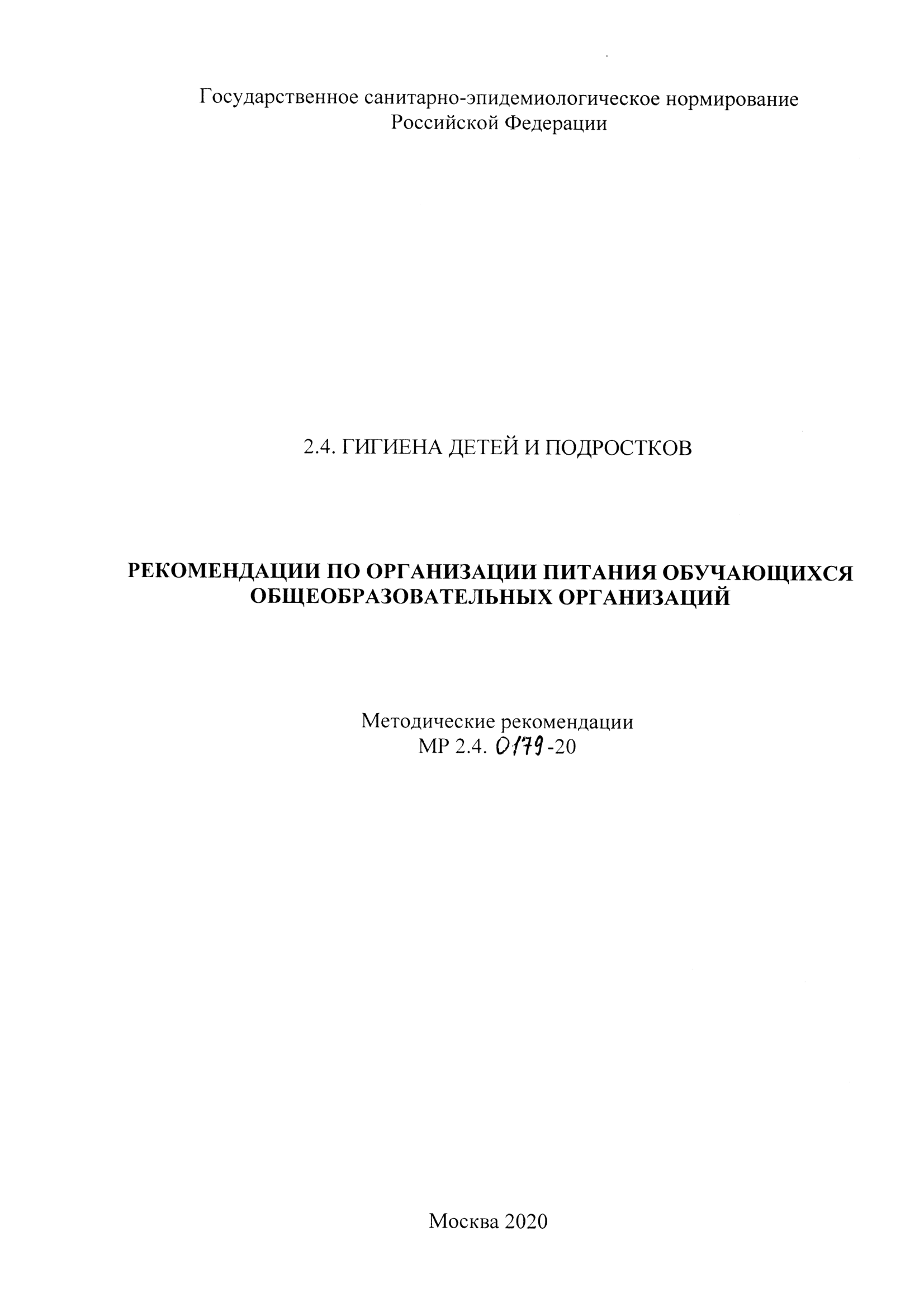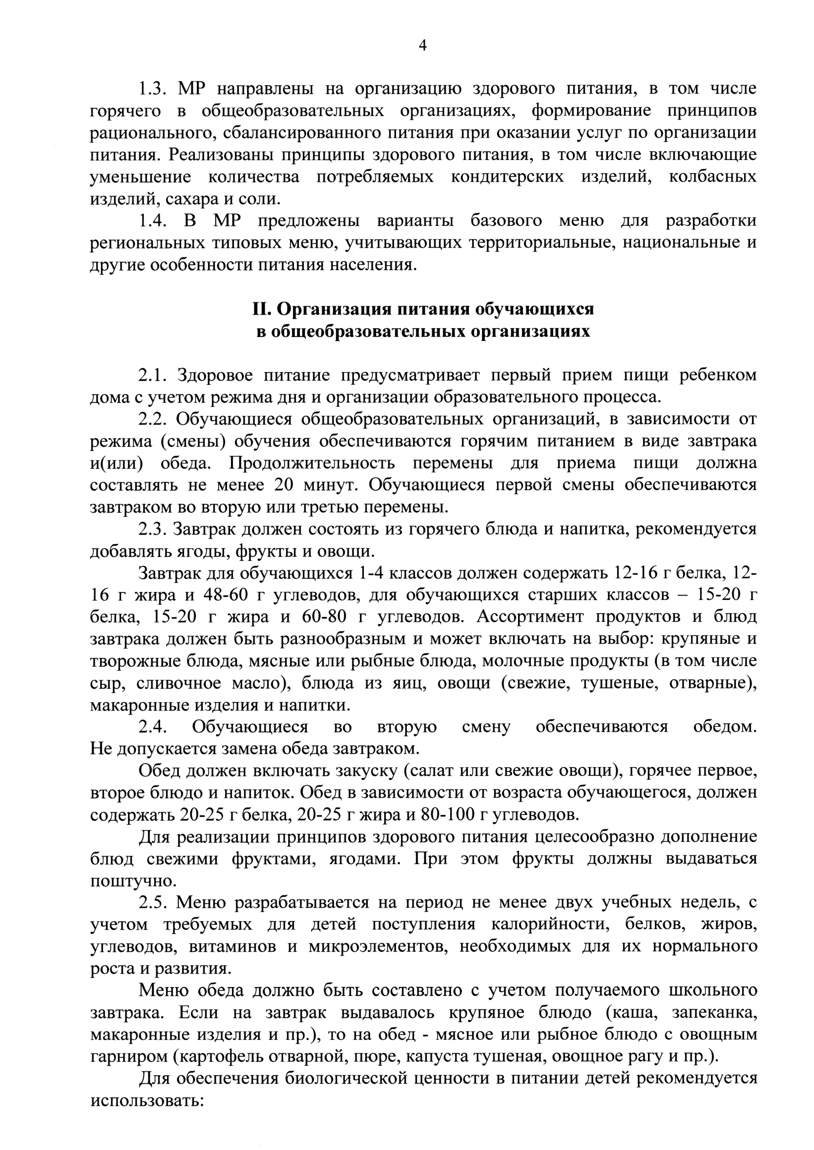 Рекомендации по организации горячего питания обучающихся общеобразовательных организациях