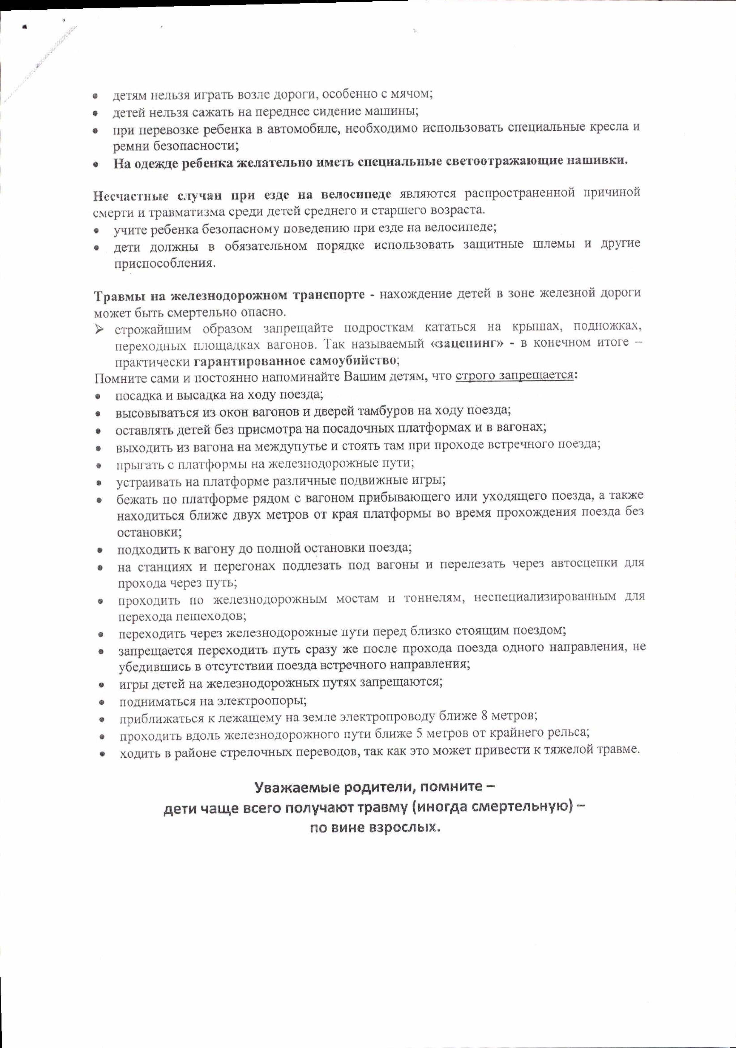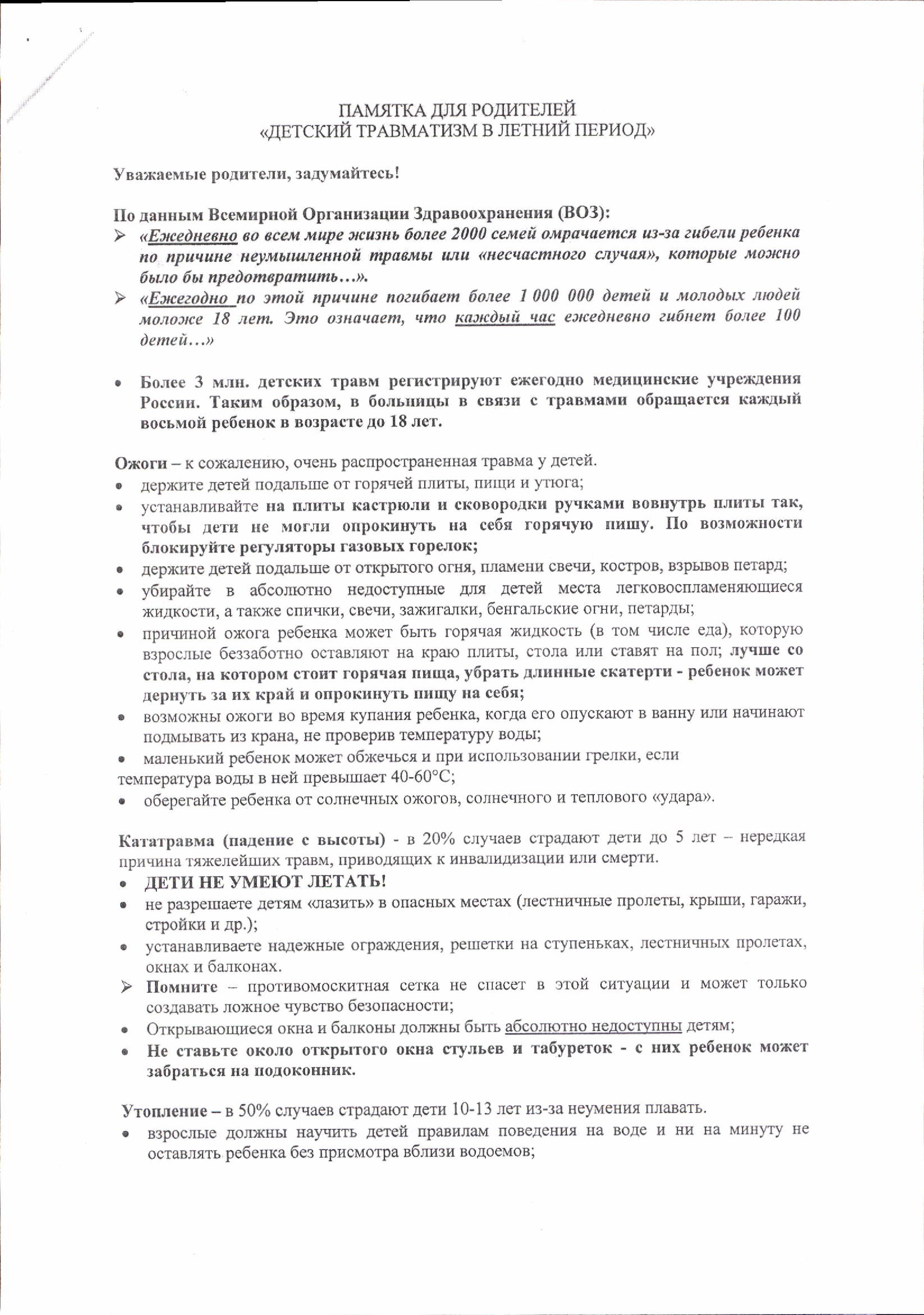 Памятка для родителей «Детский травматизм в летний период»